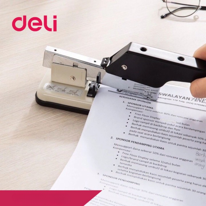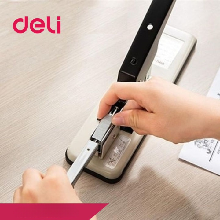 Dùng để bấm tài liệu thành tập với khả năng ghim tối đa: 100 tờ/lần giúp cho việc lưu trữ được tốt hơn. Đặc biệt bấm có trợ lực giúp cho việc bấm tài liệu được nhẹ nhàng hơn. Bấm kim đại Deli 0394 dùng size kim bấm số 23/8, 23/10, 23/13